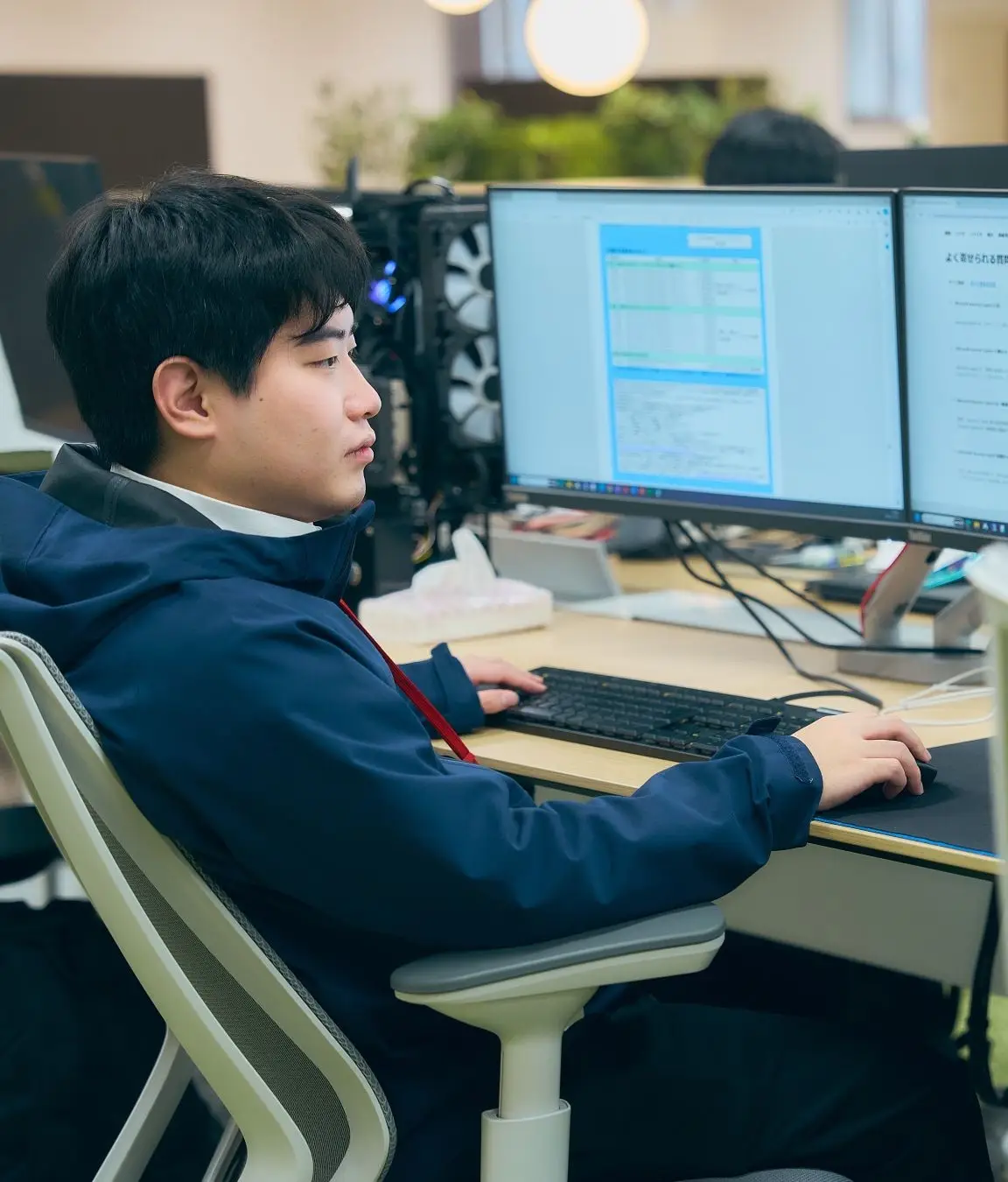 最新技術の検証環境を整備したり、最大限のパフォーマンスを発揮し集中できる、仲間とのコミュニケーションを生むオフィス環境があります。 -